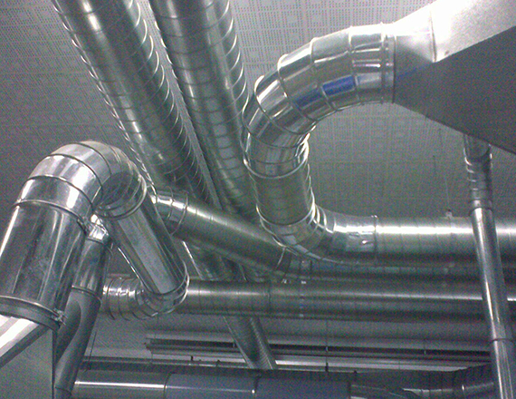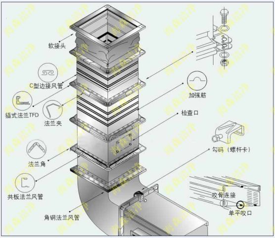 2、鍍鋅板風管垂直安裝,間距不應大于4m,單根直管至少應有2 個固定點。